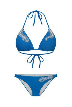 Embroidered snake in a unique eye-catching design will add an exotic sparkle to your beach or poolside look. The embroidery stretches 4 ways and is durable, made with our own developed technique.